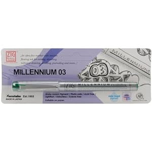 Product Description : Zig Memory System Millennium .3 Marker-Pure GreenKURETAKE-ZIG Millennium Pen: Pure Green. As part of the ZIG Memory System; these pens are great for scrapbooking and rubber stamping because the ink is photo-safe; acid-free; lightfast; and smear-proof once dry. This package contains one Millennium Pen with 0.3mm tip. Conforms to ASTM D4236. Imported.