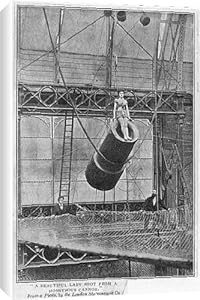 Product Description : Size: 24 x16 Canvas Print24 x16 Canvas Print, White Sides. showing ZAZEL/HUMAN CANNONBALL. Zazel at the Royal Aquarium, London. A beautiful Lady shot from a monstrous cannon. This is thought to be the earliest photograph of a human cannonball act. Chosen by Mary Evans. Photo printed on archival quality canvas. Laminated. Canvas print stretched and hand mounted over thick 1 3/8 inch wooden bars. No frame, Gallery art appearance. Ready to hang. This item is shipped