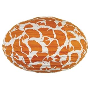 Vendor: Unique Oval-Shaped Hanging Lantern Shade Features an Orange Leaf Design Pattern. Composed of Cotton with Wooden Spiral Supports