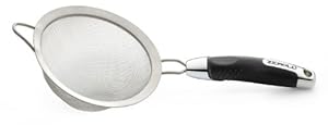 Product Description : Attention to detail and quality craftsmanship separate the Ussentials Strainer from the rest. Designed with a wide stainless steel brim and loop, the strainer can sit on top of standard size pots leaving your hands free. It's fine mesh is ideal for working with thin pasta or removing spent vegetables from sauces and can be used to make your own non fat yogurt. The Ussentials strainer makes any job easier and guarantees a spill free kitchen thanks to a no slip soft grip handle that comes standard with the Ussentials line.