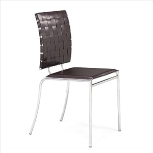 Product Description : Color: WhiteThe Criss Cross works in any decor setting, modern or transitional. It has leatherette back straps and a flat seat with a chrome steel tube frame. Features: Intricate criss-cross seat back pattern Leatherette back straps Chromed steel frame Available in your choice of espresso, white, black or red upholstery Casual dining side chair