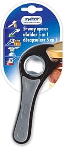Product Description : The clever Zyliss 5-Way Opener easily opens metal bottle caps, soda pop tops, machine-sealed plastic bottles and tuna can pull tabs. Also designed to break the vacuum seal on hard to open jars.